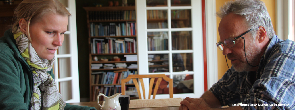 Kontrolbesøget starter som regel rundt om spisebordet over en kop kaffe, hvor landmand og kontrollør sammen gennemgår relevante bilag for markdriften og dyreholdet og ser på markkort.